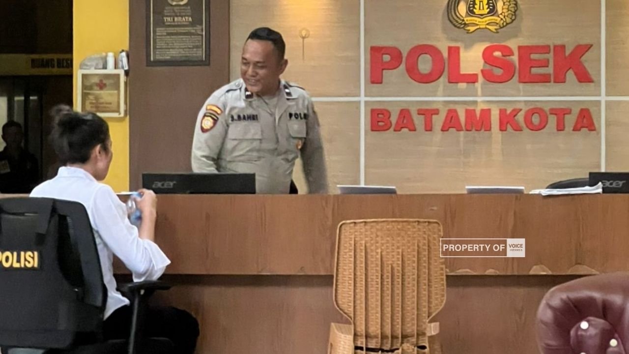Foto : Seorang pegawai honorer Pemko Batam berinisial KP (24) saat melaporkan kasus ini ke Polsek Batamkota rabu (10/9/2025) (dok.Voiceindonesia.co/dok.pri)