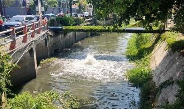 VOICEINDONESIA.CO, Surabaya – Sejak hari kamis (16/10/2025) hingga berita ini diterbitkan semburan dari dasar sungai yang diduga kebocoran gas masih belum tertangani, bahkan, semakin membesar, semburan yang semakin membesar ini disertai bau gas menyengat dan membuat warga Rungkut resah.