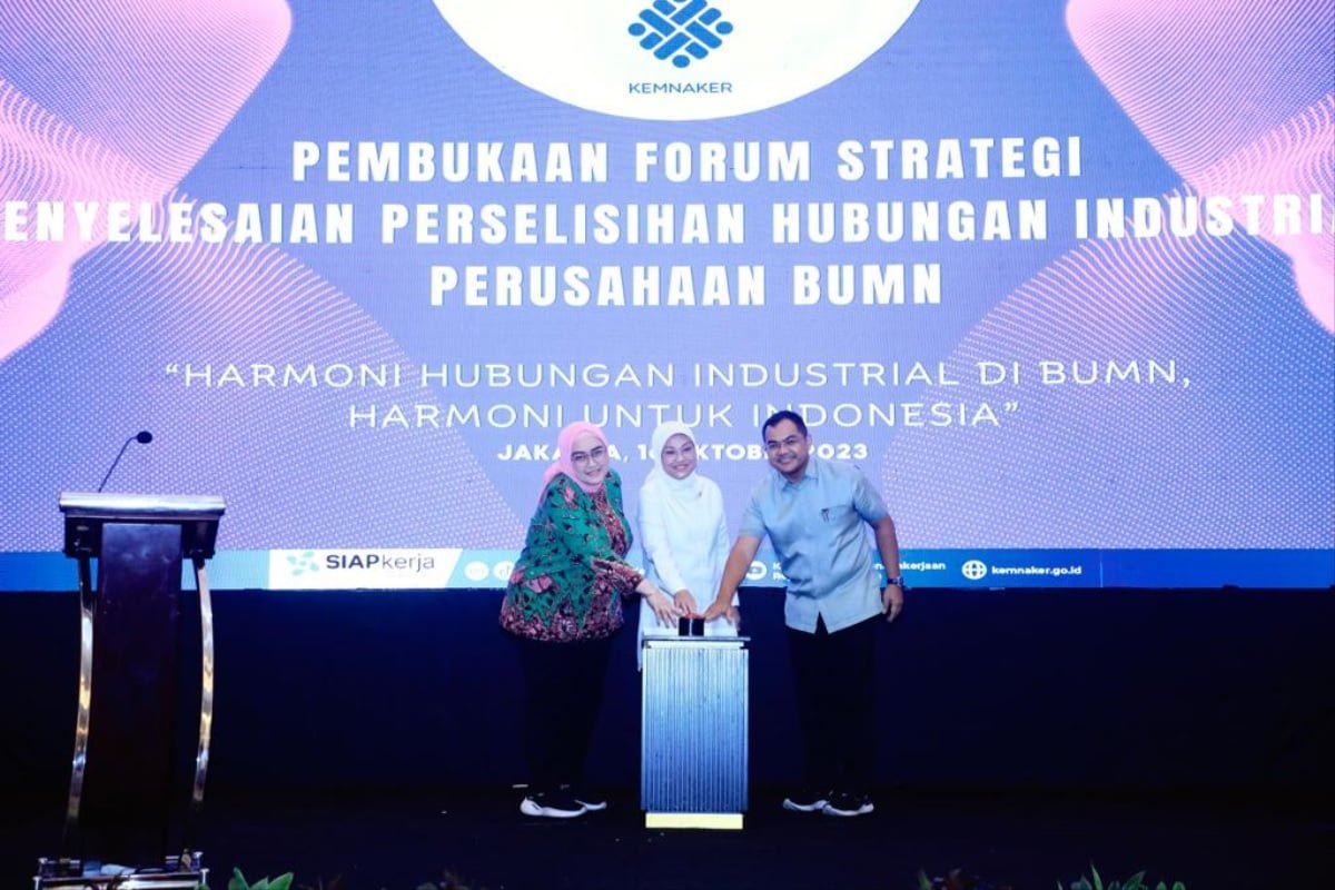 VOICEIndonesia.co,Jakarta – Menteri Ketenagakerjaan Ida Fauziyah membuka Forum Strategi Penyelesaian Perselisihan Hubungan Industrial Perusahaan BUMN yang mengambil tema “Harmoni Hubungan Industrial di BUMN, Harmoni untuk Indonesia,” di Jakarta, Senin (16/10/23).