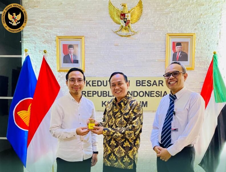 Sudan – ​Dalam rangka dukungan KBRI Khartoum terhadap promosi produk makanan olahan Indonesia di Sudan, Dubes RI Khartoum, Sunarko didampingi PF Ekonomi telah menerima kunjungan dan pertemuan dengan Pemilik dan Manajemen Nusa Café,  Hilman Firmansyah.