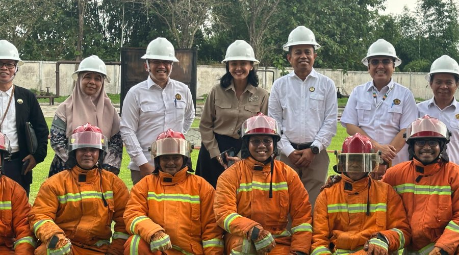 Saat berkunjung, Wamen P2MI disuguhkan pelatihan pemadam kebakaran dan simulasi pengeboran kilang minyak yang pesertanya berasal dari Jambi.