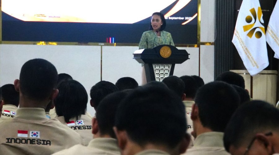 Dalam sambutannya, Wamen Christina menyampaikan apresiasi dan rasa bangga kepada seluruh pekerja migran yang telah berhasil melewati proses seleksi ketat program G to G Korea Selatan.