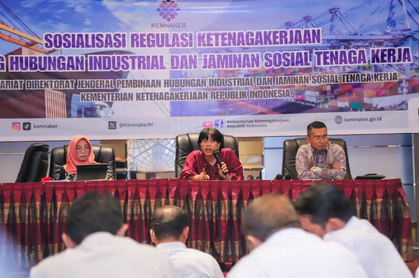 “Untuk mendukung implementasi NLE di bidang ketenagakerjaan, maka penataan NLE harus diimbangi dengan ketersediaan SDM yang kompeten, peningkatan pelindungan tenaga kerja, dan upaya mitigasi terkait masalah ketenagakerjaan yang akan timbul” kata Dirjen PHI & Jamsos Kemnaker, Indah Anggoro Putri saat memberikan ‘Sosialisasi Regulasi Pelindungan Kerja Bagi Tenaga Kerja Bongkar Muat (TKBM) di Pelabuhan’ di Padang, Sumatera Barat, Rabu (20/3/2024).