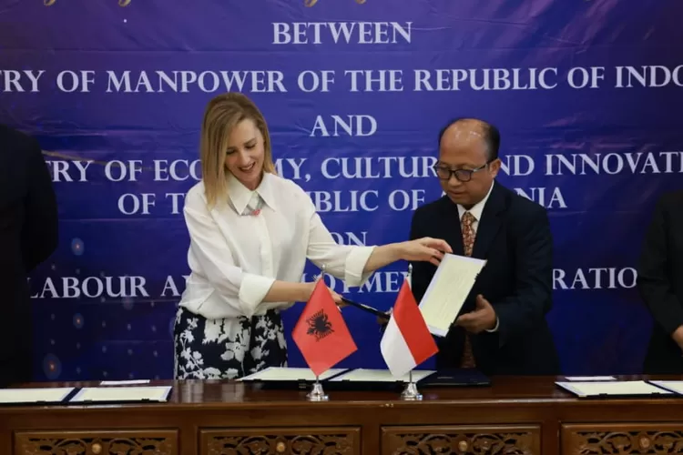 Penandatanganan dilakukan oleh Sekretaris Jenderal Kementerian Ketenagakerjaan, Anwar Sanusi dan Wakil Menteri Ekonomi, Kebudayaan, dan Inovasi Albania, Olta Manjani pada Jumat (28/6/2024) di Jakarta.