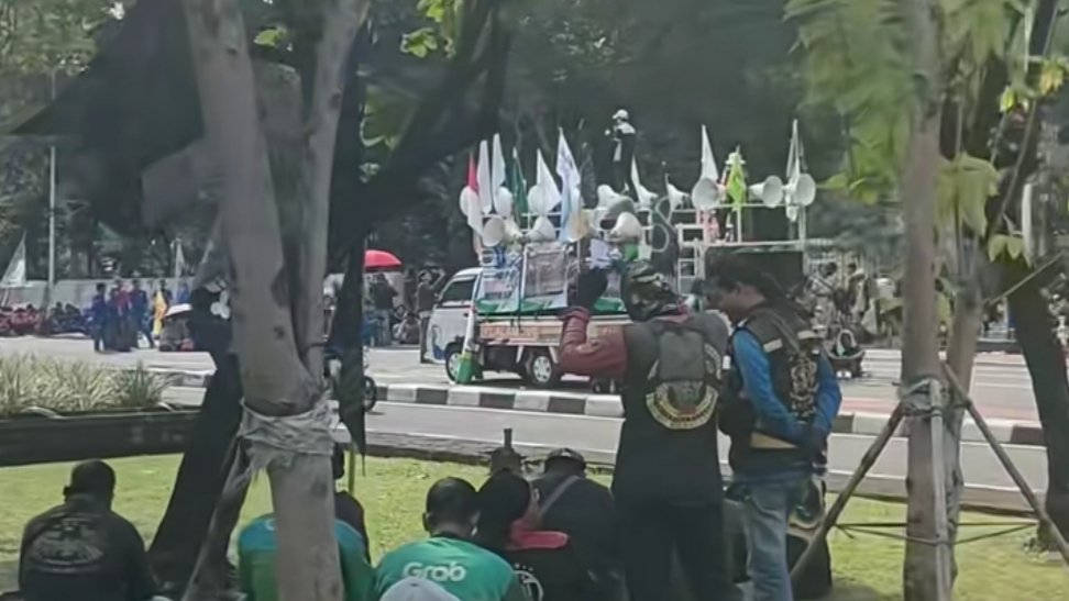 VOICEINDONESIA.CO, Jakarta — Ribuan buruh bersama pengemudi ojek online menggelar demonstrasi di kawasan Patung Kuda, Jakarta Pusat, Rabu (10/9/2025). Aksi itu membuat polisi menutup Jalan Medan Merdeka Selatan menuju Gambir sejak pukul 16.50 WIB.
