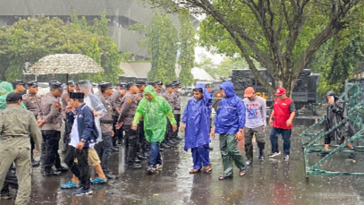 VOICEINDONESIA.CO, Semarang — Ratusan buruh dari berbagai daerah di Jawa Tengah tetap berunjuk rasa di halaman Kantor Gubernur Jawa Tengah, Jalan Pahlawan, Kota Semarang, meski hujan deras mengguyur sejak siang, Rabu (22/10/2025). Mereka menuntut kenaikan Upah Minimum Provinsi (UMP) Jateng tahun 2026 sebesar minimal 10,5 persen.