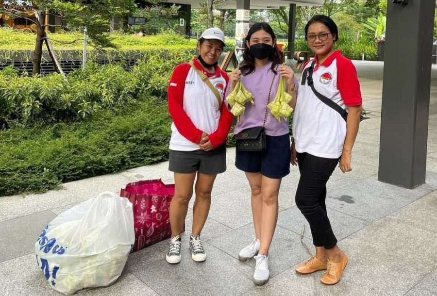 Himpunan Penata Laksana Rumah Tangga Indonesia Singapore (HPLRTIS) berkolaborasi dengan staf teknis tenaga kerja KBRI Singapore menyambut hari raya Idulfiri dengan membagikan ketupat untuk rekan-rekan PMI pada Senin (2/5/2022)