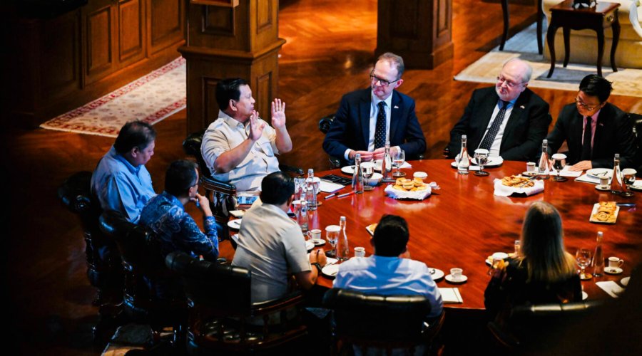 VOICEINDONESIA.CO, Bogor – Presiden Republik Indonesia Prabowo Subianto menerima kunjungan Utusan Khusus Perdana Menteri Inggris untuk Urusan Pendidikan, Prof. Sir Steve Smith, dan Duta Besar Inggris untuk Indonesia, Dominic Jermey, di kediamannya di Hambalang, Bogor, Jawa Barat pada Jumat (30/5/2025).