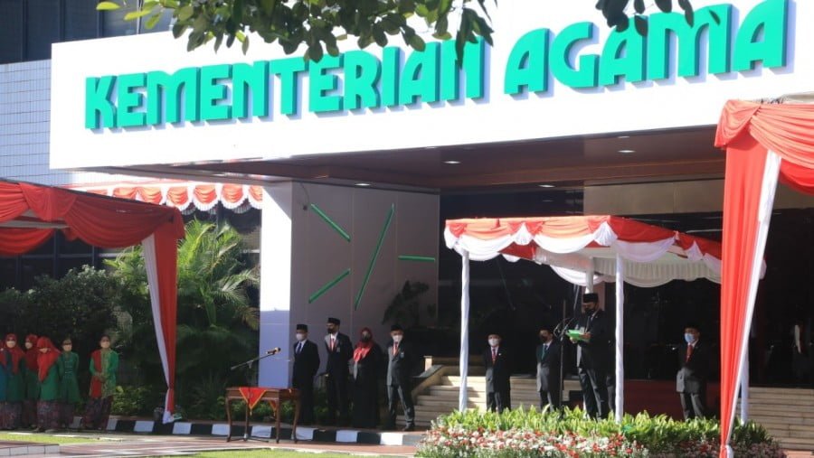 VOICEIDONESIA,JAKARTA – Menteri Agama Yaqut Cholil Qoumas memimpin upacara Hari Amal Bakti (HAB) ke-76 Kementerian Agama. Upacara berlangsung di Lapangan Upacara Kemenag Jalan Lapangan Banteng Barat Jakarta. Hadir Wakil Menag Zainut Tauhid Saádi, Staf Khusus Menag, Tenaga Ahli, pejabat eselon 1 dan 2 pusat, Penasehat dan Pengurus DWP Kemenag, serta pegawai.