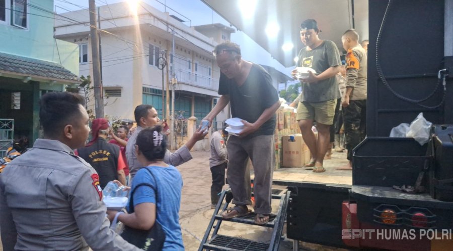 Untuk penyerahan makanan siap saji kepada masyarakat, personel Polri dibantu oleh ketua rukun tetangga (RT) setempat.