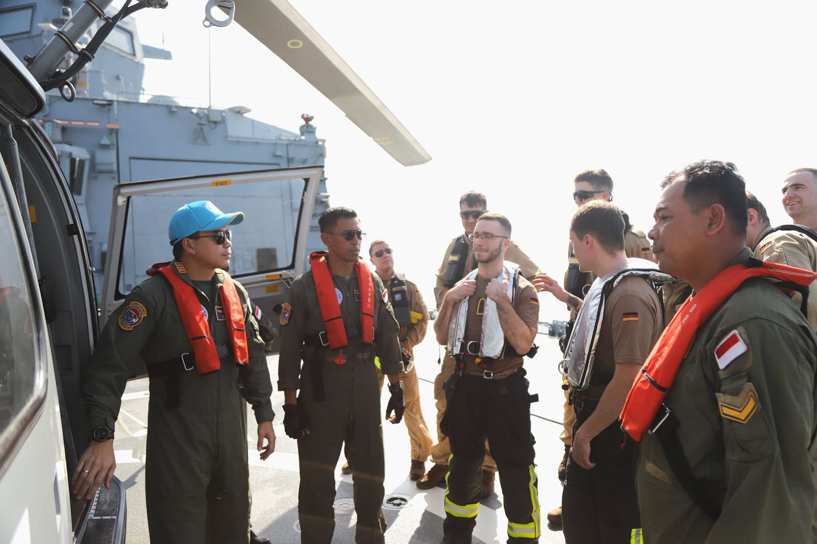 Wira menjelaskan, dalam latihan tersebut satgas MTF Indonesia menggunakan helikopter AS 565 MBe Panther HS-1306 yang berada di atas KRI Sultan Iskandar Muda-367. Sedangkan satgas MTF Jerman menggunakan helikopter FGS BWG F-222.