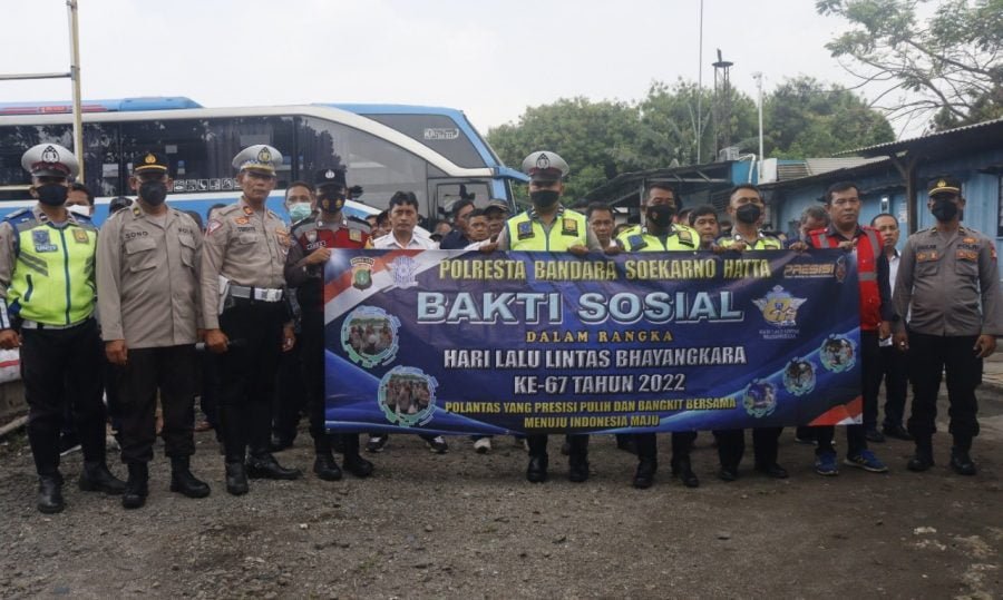 “Bakti sosial ini dilaksanakan sebagai bentuk kepedulian dan empati Polri kepada masyarakat dan rekan-rekan pekerja pengemudi transportasi publik (DAMRI) di Pengadapan BUS TOD M1 Bandara Soekarno-Hatta yang berjibaku di lapangan keseharian. Sekaligus juga silahturahmi dan mengingatkan akan pentingnya faktor keselamatan yang ada di jalan,” terang Kasat Lantas Polresta BSH, Kompol Bambang Askar Sodiq, kepada awak media.