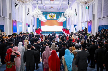 Upacara yang berlangsung khidmat itu dihadiri oleh para pejabat tinggi negara dan keluarga penerima gelar.
