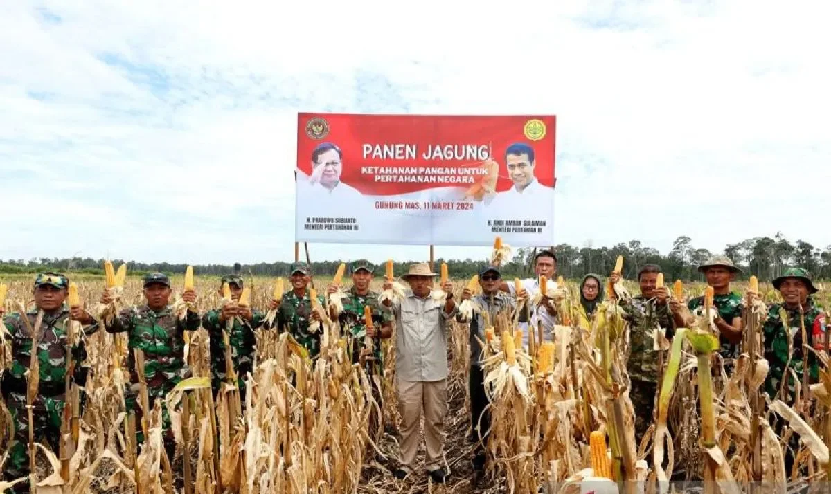 VOICEIndonesia.co, Jakarta – Kementerian Pertahanan melakukan panen jagung di kawasan lumbung pangan atau food estate yang dikelola pemerintah di kawasan Desa Tewai Baru, Kecamatan Sepang, Kabupaten Gunung Mas, Kalimantan Tengah, Senin (11/03/2024).