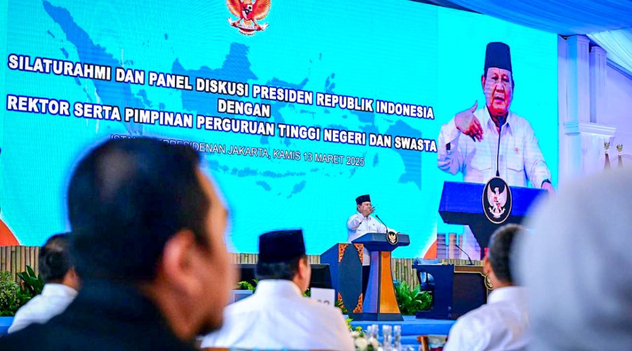 VOICEINDONESIA.CO, Jakarta – Presiden Prabowo Subianto menggelar acara silaturahmi dan panel diskusi dengan rektor serta pimpinan perguruan tinggi negeri dan swasta di Istana Kepresidenan Jakarta, pada Kamis, (13/3/2025).