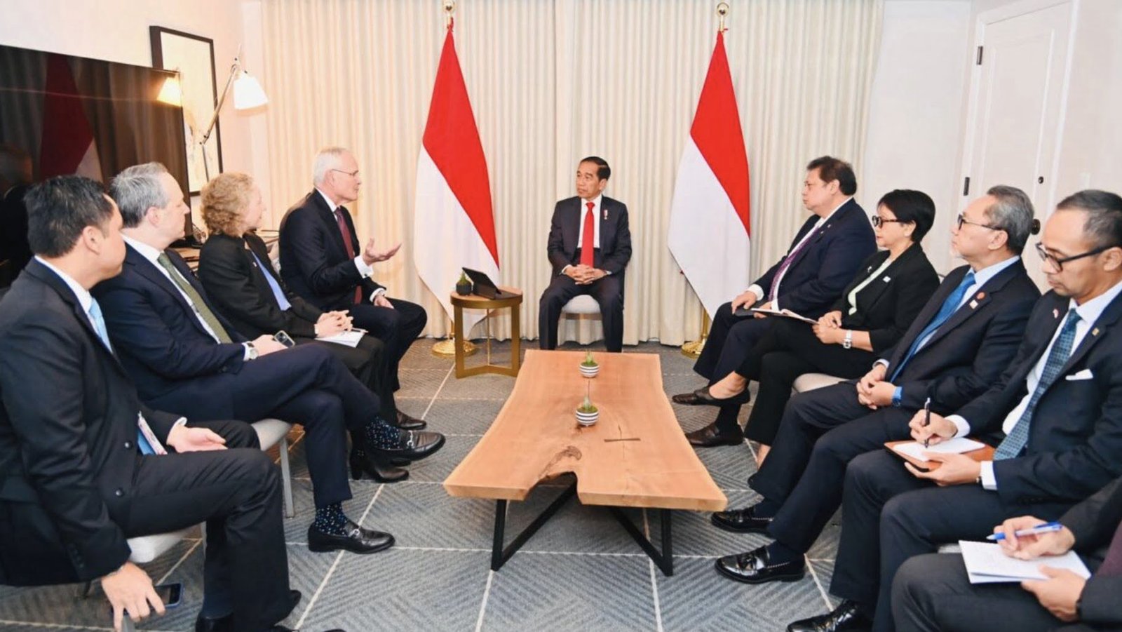VOICEIndonesia.co, San Fransisco- Presiden Joko Widodo menerima Chairman Exxon Mobil Corporation Darren Woods di Hotel Four Seasons, San Francisco, Amerika Serikat, Rabu, 15 November 2023.