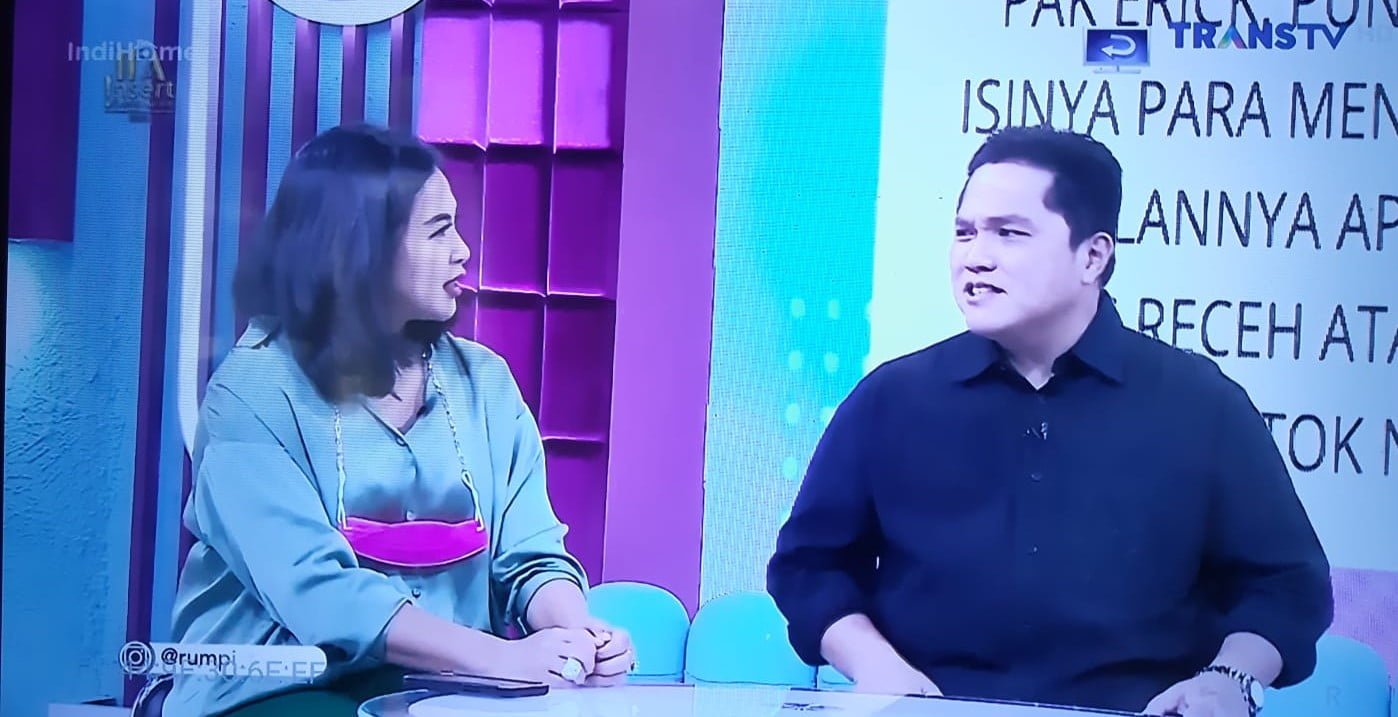 Sungguh sangat disayangkan ketika Menteri BUMN Erick Tohir tampil dalam Program Rumpi (No Secret) merupakan sebuah talkshow yang ditayangkan Trans TV yang dibawakan oleh Feni Rose seringkali melepaskan masker dengan duduk cukup dekat dengan host acara tersebut ,sementara salahsatu bintang tamu lainnya Gus Humaidi atau Khomaidi, pria yang sempat viral karena membuat miniatur pesawat Garuda Indonesia sangat tertib Prokes tanpa melepaskan maskes sedikitpun sampai akhir acara.