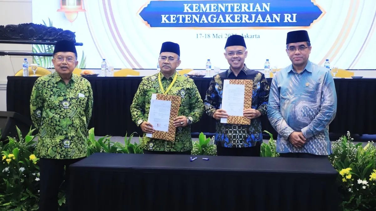 Kesepahaman Bersama ditandatangani oleh Sekretaris Jenderal Kemnaker Cris Kuntadi dan Sekjen DMI Rahmat Hidayat pada Rapat Kerja Nasional dan Halalbihalal DMI bertema Sinergi Umat dan Masjid Mewujudkan Kemakmuran Bangsa di Jakarta, Sabtu (17/5/2025).