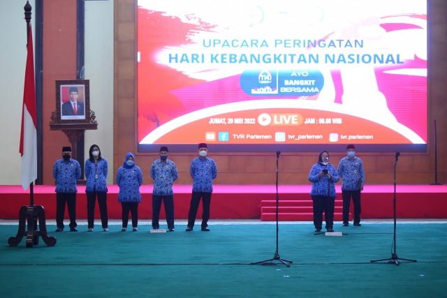 VOICEINDONESIA,JAKARTA – Pada Hari Kebangkitan Nasional (Harkitnas) yang ke-114 Tahun 2022, jajaran pegawai di lingkungan Sekretariat Jenderal MPR, DPR, dan DPD RI memperingatinya dengan melakukan Upacara bersama yang dihadiri secara offline dan online. Tahun ini, pemerintah mengangkat tema “Ayo Bangkit Bersama” sebagai bentuk seruan untuk masyarakat Indonesia agar bisa bangkit bersama dari pandemi Covid-19 yang telah melanda selama dua tahun terakhir ini. Hal ini disampaikan Deputi Dewan Persidangan DPD RI Sefty Ramsiaty sebagai Pembina Upacara saat menyampaikan sambutan Menteri Komunikasi dan Informatika pada Peringatan ke-144 Harkitnas.