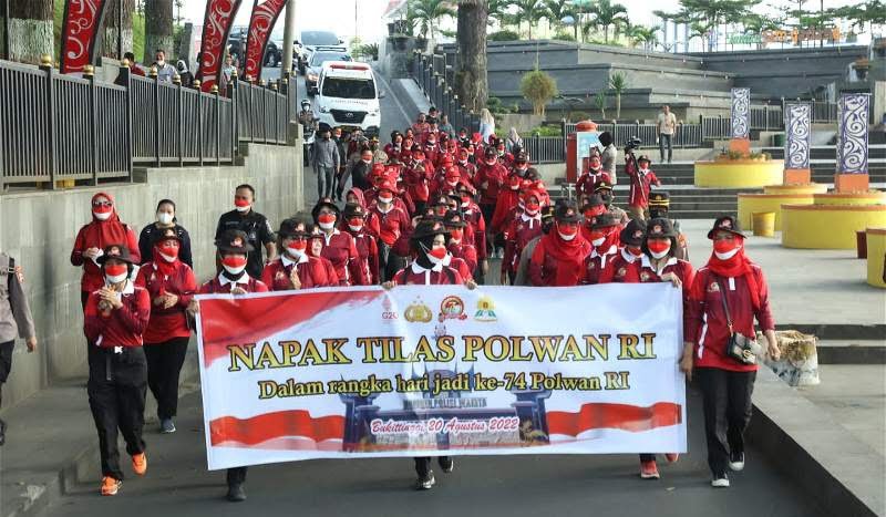 Napak tilas tersebut diikuti ratusan polwan dengan melakukan jalan kaki dari istana Bung Hatta di area Jam Gadang di menuju Tugu Polwan.