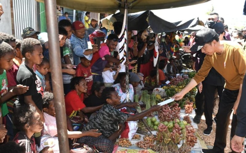 Jokowi juga berinterasi langsung dengan pedagang di Pasar Youtefa Lama dan mengecek harga sembako.