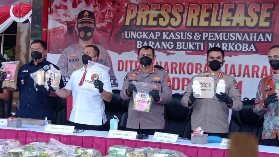 VOICEINDONESIA.CO, Surabaya – Ditresnarkoba Polda Jatim beserta Polres Jajaran musnahkan barang bukti Narkotika jenis Sabu serta Ganja, pada Kamis (25/8/2022).