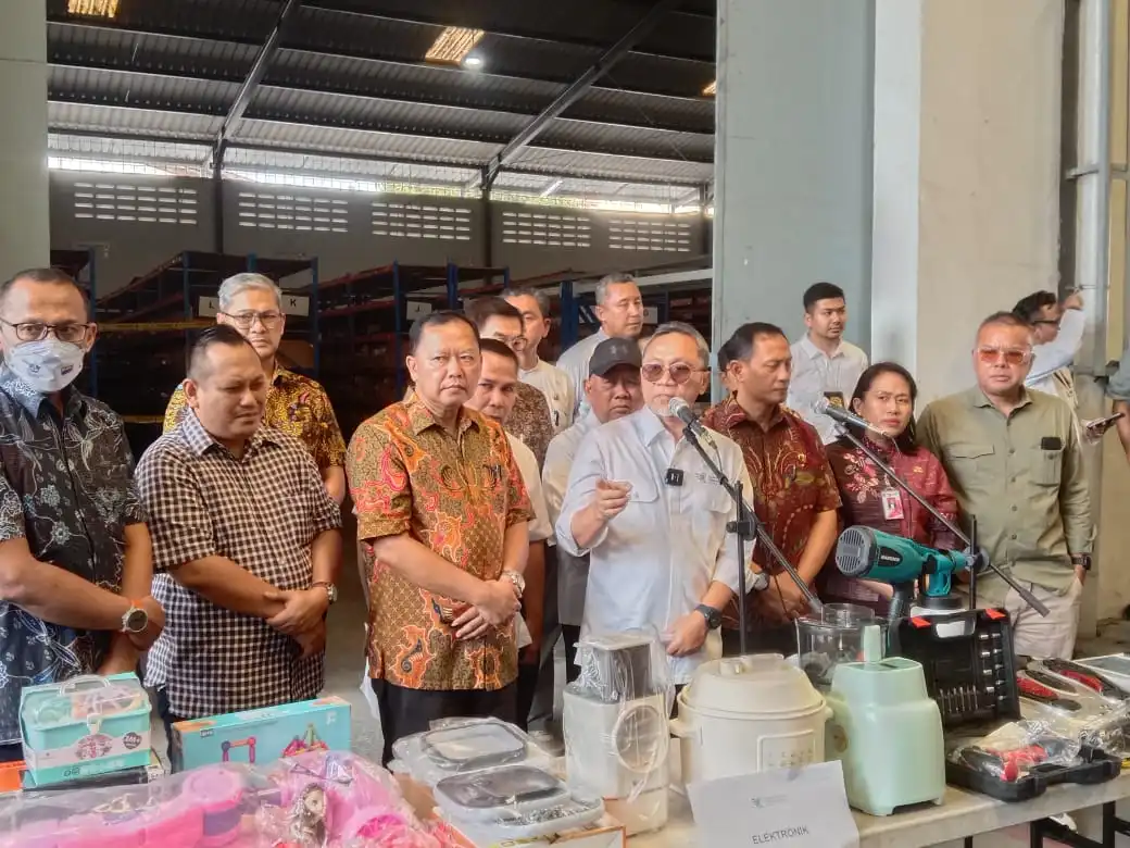 VOICEIndonesia.co,Jakarta – Menteri Perdagangan Zulkifli Hasan mengatakan, satuan tugas Foto : Menteri Perdagangan, Zulkifli Hasan saat memberikan konferensi pers dalam tindak ekspose penemuan barang impor ilega. (Istimewa)satgasyang mengatasi barang impor ilegal menemukan produk-produk selundupan dari luar negeri senilai Rp40 miliar.