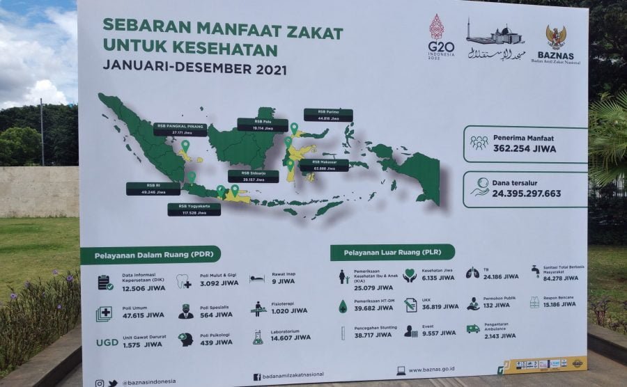 Sebaran atas manfaat untuk kesehatan ini dirasakan oleh 49.246 jiwa yang dirawat di Rumah Sehat Baznas (RSB) RI, 117.528 jiwa di RSB Yogyakarta, 39.157 jiwa di RSB Sidoarjo, 27.171 jiwa di RSB Pangkal Pinang, 19.114 Jiwa di RSB Palu, 44.816 jiwa di RSB Parimo, dan 63.888 jiwa di RSB Makassar.