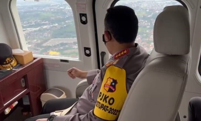 VOICEINDONESIA,JAKARTA – Kapolri Jenderal Listyo Sigit Prabowo memantau arus mudik lebaran melalui udara menggunakan helikopter, Jumat (29/4/2022). Dalam tinjauannya, Kapolri melihat jalur mudik dari Jakarta menuju timur.