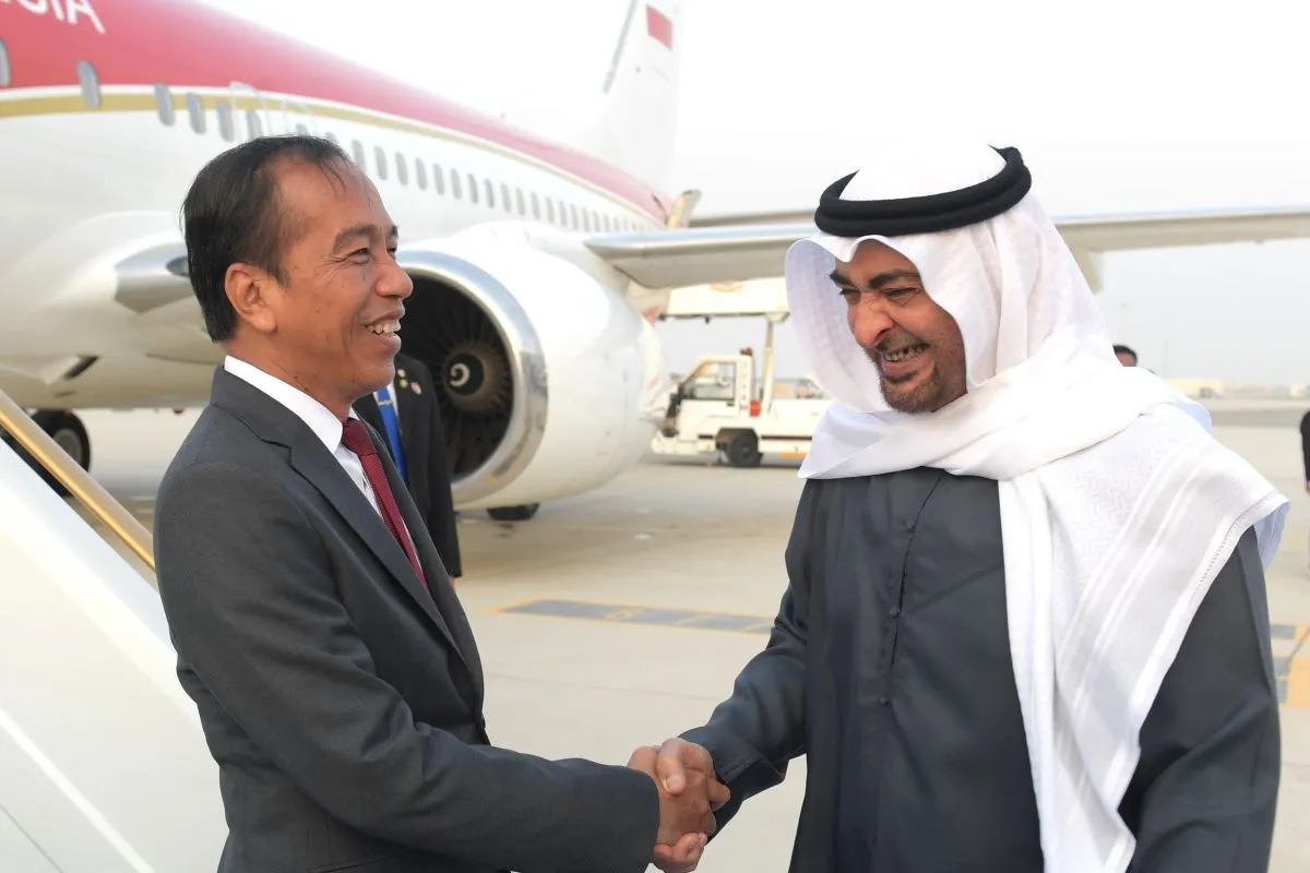 Saat MBZ berkunjung ke Indonesia 2019 silam, Presiden Jokowi juga menyambut langsung kedatangannya di Bandara Internasional Soekarno-Hatta. Saat itu, MBZ masih berstatus sebagai Putra Mahkota Abu Dhabi sekaligus Wakil Panglima Tertinggi Angkatan Bersenjata PEA.